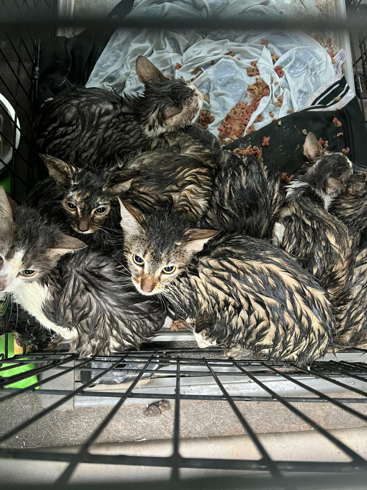 The cats had been discovered in a shivering condition: soaked fur clinging to fragile frames, eyes wide with fear, and bodies trembling from exposure. They had no refuge, no food, no dry place to curl up and wait until the storm passed.